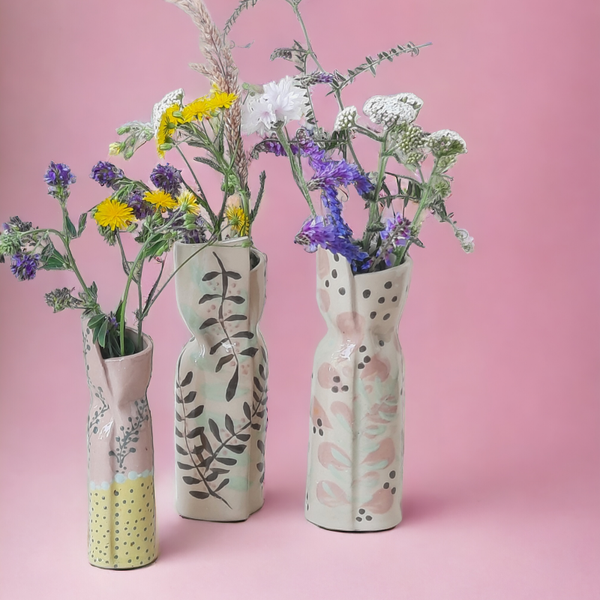 Tijdens deze workshop keramiek maak je je eigen beker, vaas of bloempotje. Ik leer je de handvorm technieken (pinchpot en platen klei), hoe het decoreren met engobe (gekleurde kleislib) werkt en zorg voor inspirerende patronen. Je bent helemaal vrij om je eigen creatie vorm te geven. Na afloop moet alles drogen en zal ik het transparant glazuren en afbakken.